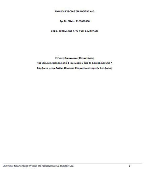 Για να κατεβάσετε τις Χρηματοοικονομικές Καταστάσεις του 2017 πατήστε εδώ